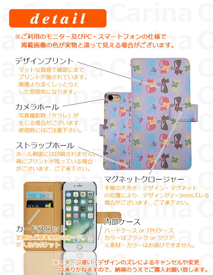 ケースの詳細 ケースのタイプ : 手帳型 ( ベルトあり ) 手帳の生地の素材 : 合皮レザー ( ポリウレタン ) ハードケースの素材 : ポリカボネート ハードケースのカラー : クリア もしくは ブラック ケースの機能と特徴 : カメラホール / マグネットクロージャー / カードスロット ハードケースで背面や角を守る事に併せて、スマホの前面を手帳カバーで覆います。