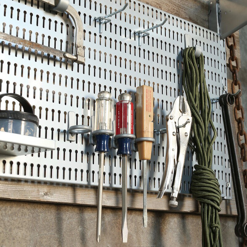 その一角で誇らしげに輝くのは、このシェルフ&ペグボード。