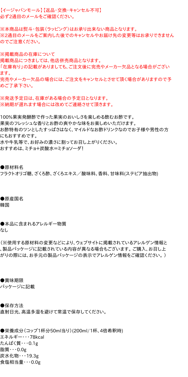 CJ 美酢(ミチョ)ざくろ 900ml ×12個【イージャパンモール】 はコチラ >>【イージャパンショッピングモール】内のみのお買い物は、送料一律でどれだけ買っても同梱する事が出来ます。
